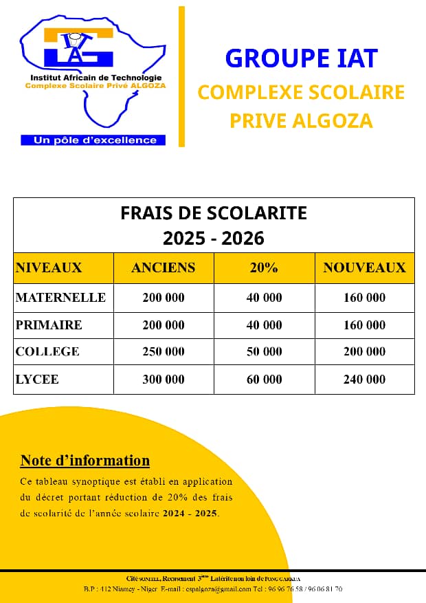 Nous dispensons le programme de l’éducation nationale nigérienne auquel s’ajoute un solide enseignement en anglais et en informatique. Le programme, dispensé dans un contexte multiculturel, intègre le meilleur des pédagogies; Il permet au élèves non seulement de s’épanouir et de développer des compétences académiques, mais de se démarquer dans un monde de plus en plus compétitif.